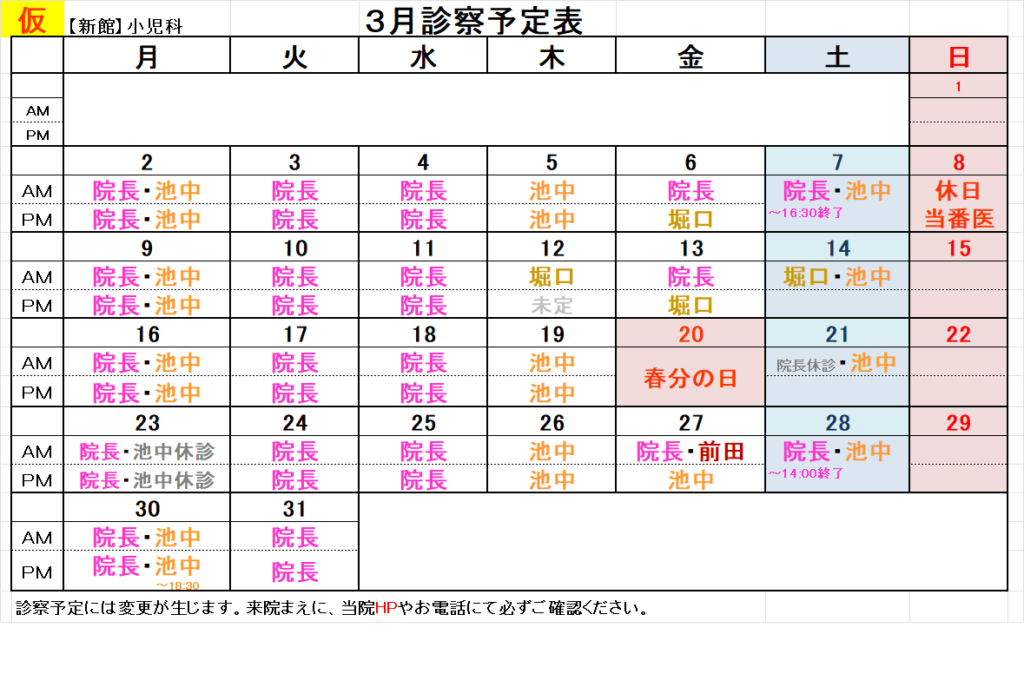 【新館】外来担当表